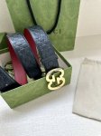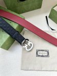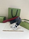 Width 4.0cm Gucci interlocking double G belt original steel buckle, derived from the brand's modern style collection design, after reinterpretation and unique innovation. Presented on the slender leather belt.