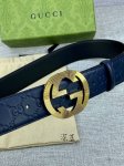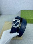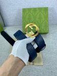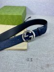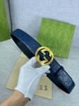 Width 4.0Cm Gucci interlocking double G buckle belt, made of Gucci Signature blue leather with heat embossing technology, with a thick touch and clear print pattern.