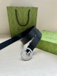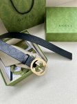 Width 4.0Cm Gucci interlocking double G buckle belt, made of Gucci Signature blue leather with heat embossing technology, with a thick touch and clear printed pattern.