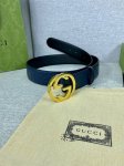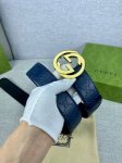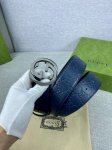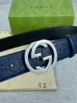 Width 4.0Cm Gucci interlocking double G steel buckle, made of Gucci Signature blue leather with heat embossing technology, with a thick touch and clear prints.