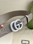 Width 4.0Cm This Gucci piece seamlessly blends the brand's past and future, reinterpreting classic design elements with a modern twist. The interwoven Guccio Gucci monogram is subtly incorporated into textures and material variations, appearing as a printed embossed pattern on the black leather of this belt. The iconic double-G buckle adds a touch of glamour to the entire design. (DDD Gg printed embossed leather DDD Palladium-toned hardware DDD Double-G buckle DDD)