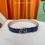 Gucci new belt, one side is embossed with large blue flowers, the other side is embossed with small flowers on a sandy bottom, with a boutique rotating buckle, width 3.8cm