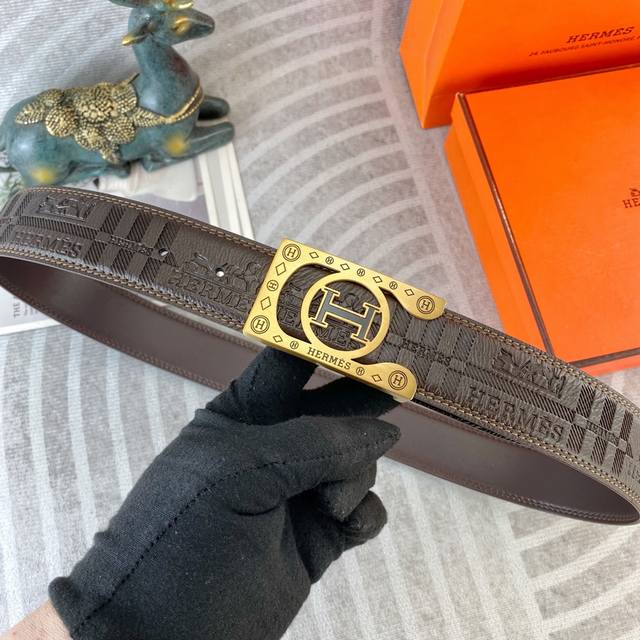 Hermes Hermes men's double-sided leather belt 38mm, double-sided top layer cowh