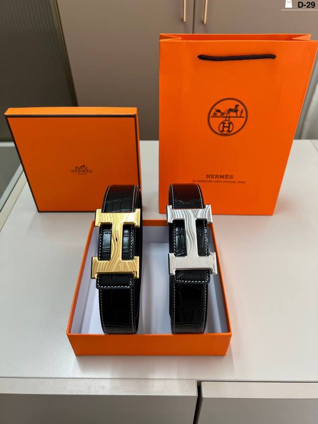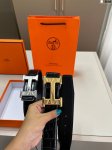 Hermes Men's Double-Sided Leather Belt 38mm. Double-sided imported patterned le