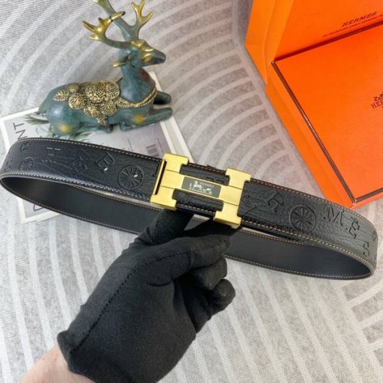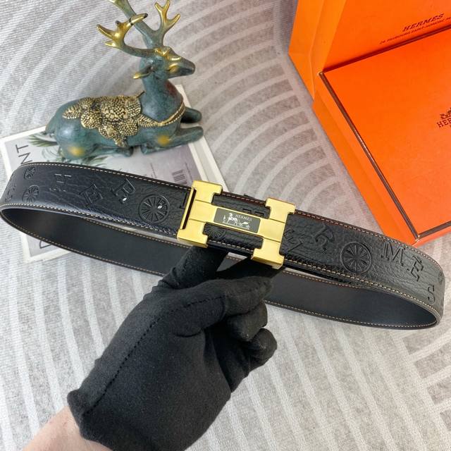 Hermes original quality classic men's belt counter Togo leather with stainless s