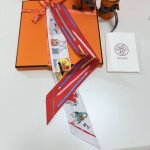 1940665FFF #Hermes "You Write and Freedom Square" Twilly small silk scarf.