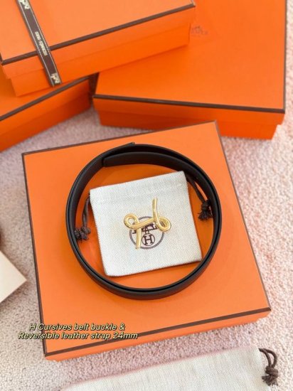 H Cursives premium hardware paired with imported Epsom leather, 24mm width. Hermes women's belts are highly regarded for their exquisite craftsmanship, high-quality materials, and classic design, making them a top choice for women's belts. Simple and elegant, the product has a delicate feel and is not only a practical accessory but also adds a highlight to the overall look.