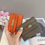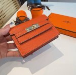 / Hermes genuine leather card holder coin purse top layer cowhide elegant accordi