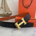 Hermes Men's Double-Sided Leather Belt 38mm. Double-sided imported patterned le