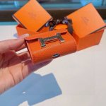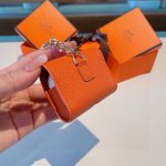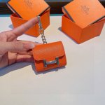 Hermes official website 1:1 earphone bag Palm pattern leather metal logo Fashio