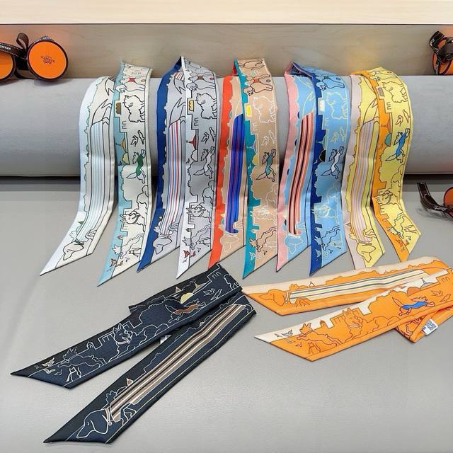 Hermes "Space Racehorse" Twilly scarf Twilly scarf 100% mulberry silk heavyweig