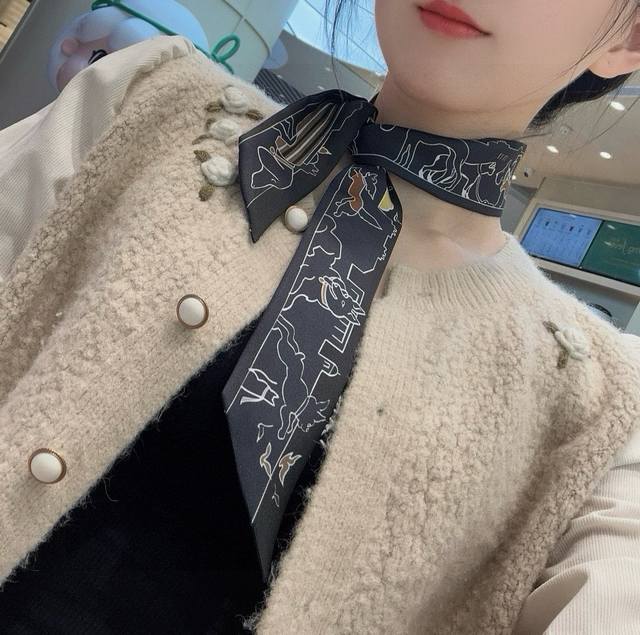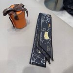Hermes "You Write and Freedom Square" Twilly small silk scarf. Twilly silk ribb