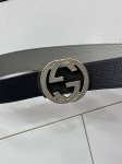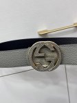 double G buckle and inlaid cowhide leather. The front of the belt is crafted from grey