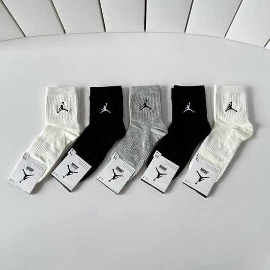 Air Jordan New Embroidered Mid-Length Slouch Socks! Five pairs per box, same style as in department stores, designer street style, a must-have for trendsetters, super easy to match.