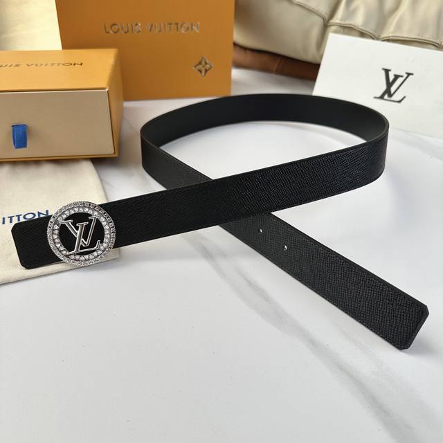 L0Uis Vuitt0N Original belt from Donkey, 35mm wide. Lined on one side with top-grain palm-grain leather and on the other side with imported calfskin. Decorated with a round diamond buckle, it's reversible and durable, a stylish and versatile style.