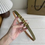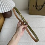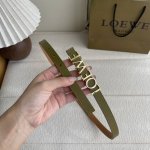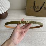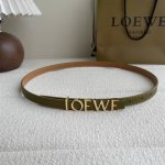Loewe new smooth cowhide leather belt, decorated with metal Loewe logo, 1.5cm wide, five-hole adjustment. Color: Olive