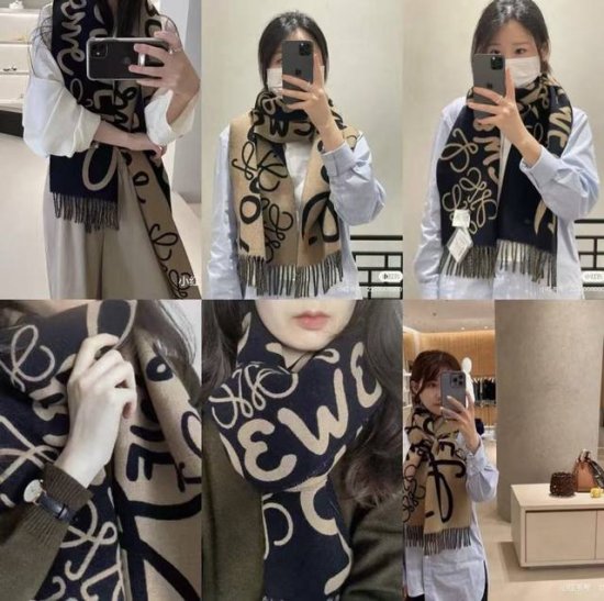 Loewe's latest 2017 design, a reversible scarf with a graffiti pattern, unisex. A stunning new Loewe scarf! Highly recommended! Extremely hard to find! Authentic quality, far superior to market quality, no pressure to buy or sell, exquisitely crafted, substantial weight, and our price is incredibly worthwhile! Unisex style, simple and elegant, suitable for everyone!! Adorns everyone, exudes sophistication! Anyone who wears this will look chic!! We really hope you don't miss out on this style. Size: 30cm, Composition: 90% wool, 10% cashmere, not a synthetic fiber product, comes with a Loewe Anagram embossed leather label.