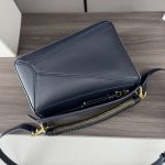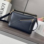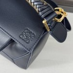 cowhide leather The Puzzle handbag is the debut handbag launched by creative director Jonathan Anderson for Loewe. *The rectangular shape and precise cutting techniques create the Puzzle's unique geometric lines. *Made of Nappa cowhide leather *With a hand-woven top handle. Shoulder or crossbody *Adjustable and detachable shoulder strap *One suede interior slip pocket and one exterior rear zipper pocket *Cowhide leather zipper pull *Herringbone cotton canvas lining with Anagram embossing