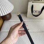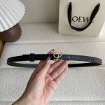Loewe's new smooth cowhide leather belt, decorated with a metal Loewe brand logo, 1.5cm wide, five-hole adjustment. Color: Black