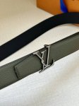 Lv Attract reversible belt features a slightly curved edge and a modern-shaped end, with a spiral structure integrated into the metal Lv buckle. Classic colors and different textures present two styles, achieving multiple styling possibilities.
