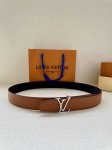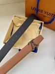 Lv Attract reversible belt features a slightly curved edge and a modern-shaped end, with a spiral structure integrated into the metal Lv buckle. Classic colors and different textures present two styles, achieving multiple styling possibilities.
