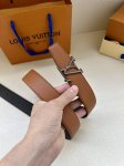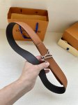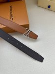 Lv Attract reversible belt features a slightly curved edge and a modern-shaped e