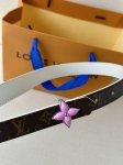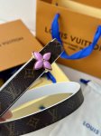 2.0 Wide Lv Mini Flowergram double-sided belt is made of Monogram canvas and stitched leather, with a pointed Monogram flower buckle to set off the end of the olive-shaped belt, injecting a soft style into the slender design