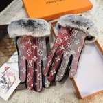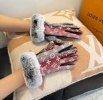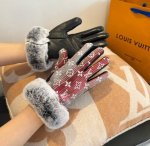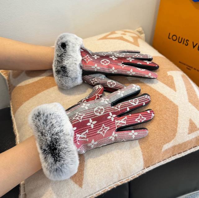 2025Lv Gradient Lazy Rabbit Fur Fabric Gloves with Leather Trim, Stylish Motorcycle Gloves, New Autumn/Winter Fabric Lining, Fashionable, Super Comfortable and Soft, Versatile! A Must-Have for Every Beauty! Comes with Box. Sizes M, L, DDD