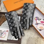 2025Lv Gradient New Fabric and Leather Gloves, Stylish Motorcycle Gloves, Autumn/Winter New Arrival with Fabric Lining, Fashionable, Super Comfortable and Soft, Versatile! A Must-Have for Every Beauty Enthusiast. Comes with Box. Sizes M, L, DDD