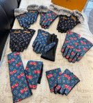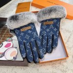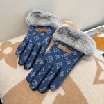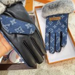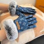 2025Lv New Arrival Fur-lined Denim Gloves with Leather Trim, Stylish Motorcycle Gloves, New Autumn/Winter Arrival with Fabric Lining, Fashionable, Super Comfortable and Soft, Versatile! A Must-Have for Every Beauty! Comes with Box. Sizes M, L, DDD