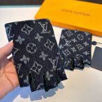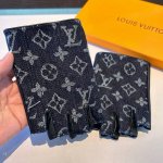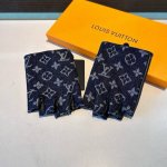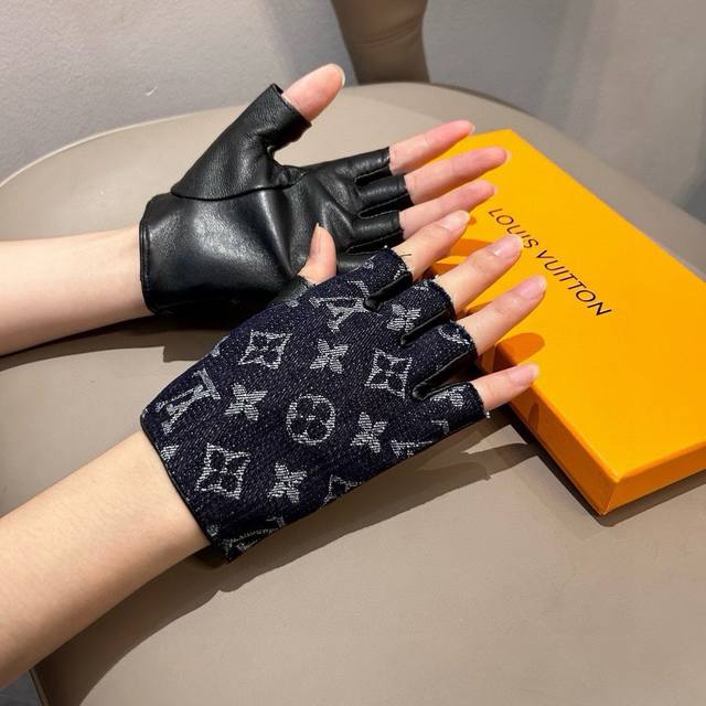 2025Lv New Arrival Short Denim Gloves with Leather Trim, Stylish Motorcycle Gloves, Autumn/Winter New Arrival with Fabric Lining, Fashionable, Super Comfortable and Soft, Versatile! A Must-Have for Every Beauty! Comes with Box. Sizes M, L, DDD