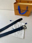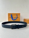 3.4cm wide Heritage belt, crafted from premium imported calfskin and smooth leather, features a brushed metal arched buckle for an elegant touch. A Louis Vuitton embellishment at the end completes the look, making it suitable for formal attire.