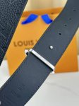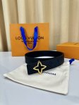 3.4mm wide Louis Vuitton classic black leather belt, featuring embossed details showcasing the brand's iconic elements, paired with a gold four-leaf clover buckle for an exuding luxurious feel. The orange brand shopping bag and gift box complement each other, inheriting the Parisian fashion heritage of 1854, making it an ideal choice for showcasing refined taste.