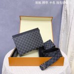 3-piece Louis L belt, wallet, and clutch set. Made with genuine leather, the belt has a width of 3.8cm. The buckle features the original hardware. This is a replica of the original clutch. Dimensions: 26 x 20cm. Exclusively customized, the 3-piece set comes in high-end packaging. A perfect gift for a stylish and elegant occasion. I don't make cheap products. I demand quality. I only offer the best.