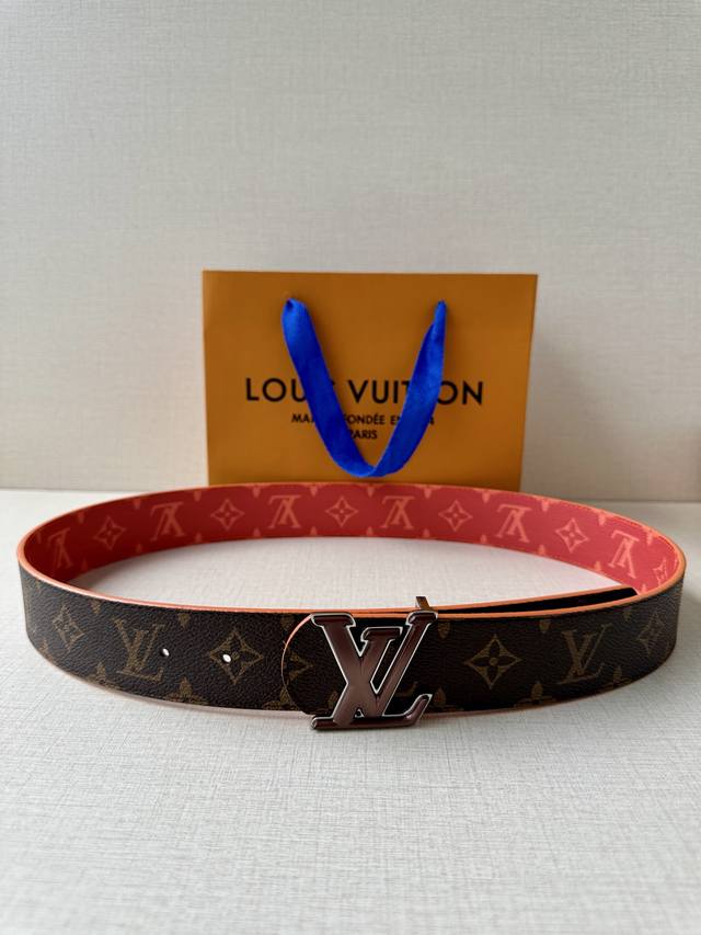 4.0 Wide Lv Dimension Sunset double-sided belt is made of Monogram coated canvas, which reproduces the beautiful mood of morning light and sunset with warm tones, and captures the beauty of the passage of time with the eye-catching gradient effect buckle
