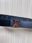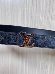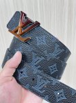 4.0 width 2025 new LV Pyramide belt, made of natural calfskin and featuring Louis Vuitton's signature design elements, is fashionable and trendy, showcasing the brand's personality. The calfskin is adorned with Louis Vuitton's iconic Monogram embossing. The gradient hardware on the LV Pyramide buckle presents a unique texture. DDD