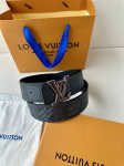 4.0 Width As one of Louis Vuitton's most beloved designs, the Lv Initiales double-sided belt is spliced with bright cowhide leather and Monogram Eclipse canvas, and the polished Lv letter paint buckle continues the modern aesthetics
