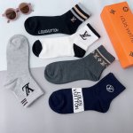 5 pairs of Louis Vuitton men's mid-calf socks (packaged in one box). Made of pure cotton, a must-have for trendsetters. Classic logo mid-calf socks, stylish and versatile! You deserve to own them! Combed cotton fabric, super soft material, comfortable and breathable, fashionable and versatile.