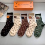 5 pairs of Louis Vuitton men's mid-calf socks (packaged in one box). Made of pure cotton, a must-have for trendsetters. Classic logo knee-high socks, stylish and versatile! You deserve to own them! Combed cotton fabric, super soft material, comfortable and breathable, fashionable and versatile.