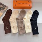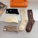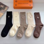 A box of 5 pairs of Louis Vuitton high-end embroidered cashmere knee-high socks, including packaging. A must-have for fashionistas, these are high-quality knee-high socks from boutiques and are super easy to match.