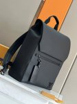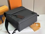 The new LV Takeoff Backpack is a trendsetting choice with its refined elegance. Made of fine cowhide leather as soft as old-fashioned airmail stationery, it's embellished with a matte metal LV logo. The main compartment and front flap pocket provide ample space for weekend getaways or city safari. Dimensions: 33 x 12 x 38 cm