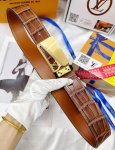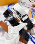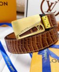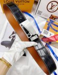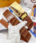 Belt: Louis Vuitton top-grade original replica. Made of 100% top-grain cowhide, guaranteed genuine leather. Features a carved, openwork design, a 24K pure steel buckle, and imported original crocodile leather texture that will never fade. Hand-stitched with double seams, double-sided and reversible, of the same quality as boutique items. Ideal for gifting or personal use. Packaging: Please look for the boutique packaging shown in the picture. Includes a hole punch and UnionPay invoice. Width: 4.0cm.