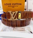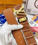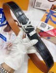 Belt: Louis Vuitton top-tier replica. Made with 100% imported original top-grain cowhide, guaranteed genuine leather. Features include: carved and hollowed-out details, vacuum electroplating, colorfastness, 24K pure steel buckle, crocodile leather texture, reversible, and is of the same quality as those in boutiques. Ideal for gifting or personal use. Packaging: Please look for the boutique packaging shown in the picture. Includes a hole punch and UnionPay invoice. Width: 40mm.