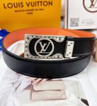 Belt: Louis Vuitton top-tier replica. Made with 100% imported original top-grain cowhide, guaranteed genuine leather. Features include: intricate carving design, vacuum electroplating, colorfastness, 24K pure steel buckle, delicate calfskin texture, reversible, and is of the same quality as those in boutiques. Ideal for gifting or personal use. Packaging: Please look for the boutique packaging shown in the picture. Includes a hole punch and UnionPay invoice. Width: 40mm.