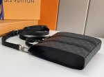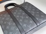 Developed with premium, authentic, all-steel hardware, this handbag draws inspiration from the Louis Vuitton Sac Plat bag, crafted in an elegant Monogram Eclipse Reserve canvas. Reinforced leather straps and a designer plaque continue the traditional details, complemented by a wide zippered opening. A detachable shoulder strap offers versatile carrying options. Monogram Eclipse Reverse coated canvas, cowhide leather trim, fabric lining, hardware, zipper closure, large main compartment, interior patch pocket, detachable designer plaque, and a detachable, adjustable shoulder strap! Model: M46098; Dimensions: 26 x 28.5 x 6 cm