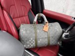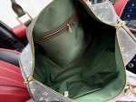 . Louis Vuitton travel bag. Coated canvas shoulder bag with Louis Vuitton logo print. Unisex couple's style in green and black. Spacious and adjustable shoulder strap, perfect for work, leisure, or travel. High-definition hardware logo, interior compartments, and dedicated lining. Smooth zippers and exquisite craftsmanship, every detail is meticulously crafted! A must-have for men. Dimensions: 50 x 29 x 23 cm