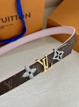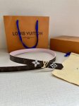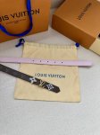 Louis Vuitton 2.0 narrow leather belt, featuring the classic Monogram leather, a gold LV logo in the center, and Swarovski crystal four-leaf clover buckles on either side. Exquisite stitching, packaged in an orange box with blue handles, embodying the luxury and brilliance inherited from Paris since 1854.