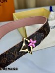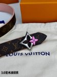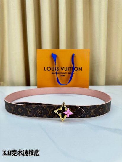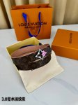 Louis Vuitton 3.0 wide leather strap with a wave pattern, featuring the classic brown monogram pattern and a diamond-shaped four-leaf clover buckle. The leather is delicate and textured. The orange shopping bag and gift box complement each other, showcasing the brand's Parisian heritage dating back to 1854. Understated luxury, a stylish choice. DDD