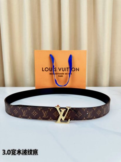Louis Vuitton classic Monogram leather belt, 3.0 width with a wave-patterned design, and the iconic LV metal buckle exudes elegance. Available in black, combining style and practicality, a perfect finishing touch to any look.