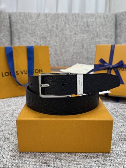 Louis Vuitton LV belt with pebbled embossed pattern, original factory hardware, exquisite hand-painted edges, soft and comfortable, 3.5mm wide.